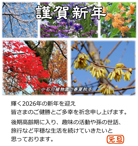小石川植物園の梅林では、多くの品種のウメ(梅)の花が1月から3月にかけて芳香を放ちながら次々に咲き出します。この日(1/10)はまだ静かな佇まいでしたが、よく見てみると紅梅、白梅がチラホラと咲き始めていました。左は白梅の長寿(品種名)です。 |