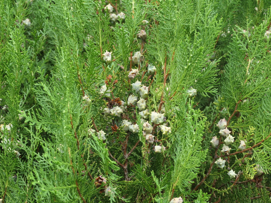 (コノテガシワ)2024.5@小石川植物園 花の後の球果 |